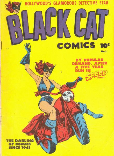 Many comic book buffs believe Wonder Woman was the first female character to wear what amounts to a bathing suit while doing superhero work. Actually, several characters are tied for that dubious distinction — Quality Comics' Phantom Lady and Wildfire; and Harvey's Black Cat, all of whom beat Wondy into print by four months. (And the only reason they qualify for the "honor" was because Quality's Miss America (no relation) didn't have a costume yet and the others that debuted in August, 1941, Holyoke's Miss Victory, Lev Gleason's Pat Patriot and Bell Features' Nelvana of the Northern Lights, wore just a little bit too much.)
